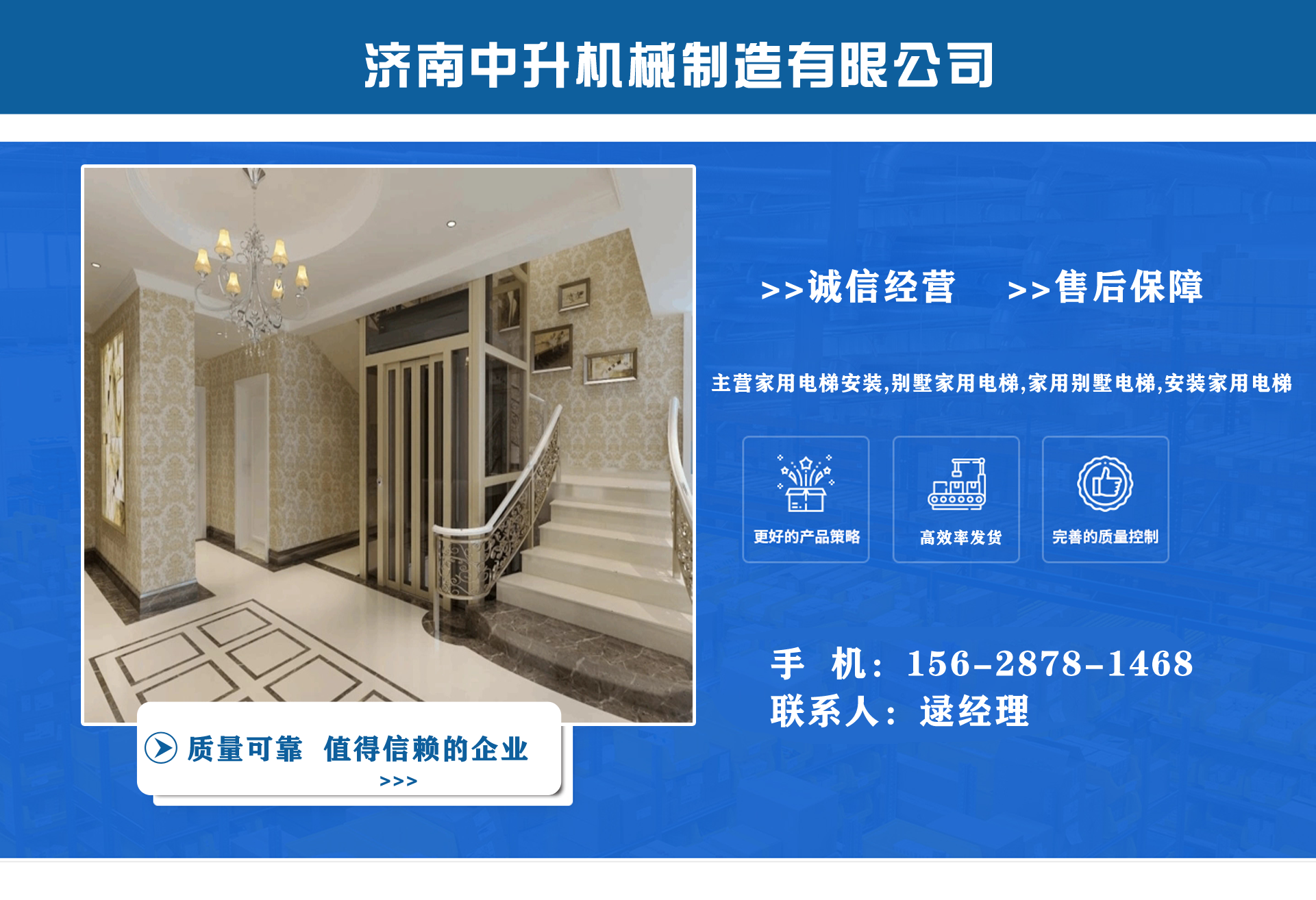 濟南中升機械制造有限公司主營家用電梯安裝,別墅家用電梯,家用別墅電梯,安裝家用電梯等業(yè)務,質(zhì)量可靠,值得信賴! 公司為客戶提供免費上門測量,根據(jù)實際情況1對1服務,保障符合用戶需求,終身提供售后服務,讓用戶買的舒心用的放心。匠心團隊,打造信賴產(chǎn)品,我們有團結(jié)、奮進拼搏的匠心團隊,為您提供可信賴的品質(zhì)保證。 從創(chuàng)立以來一直嚴格執(zhí)行質(zhì)量管理體系、環(huán)境管理體系等相關(guān)標準管理體系,“顧客滿意”是我們始終如一的追求。我們有屬于自己培養(yǎng)的安裝隊伍,24小時服務電話,為您提供可靠的服務與支持。 我們的愿景是建設國內(nèi)具有影響力的電梯公司,做城市美好空間的好伙伴。...